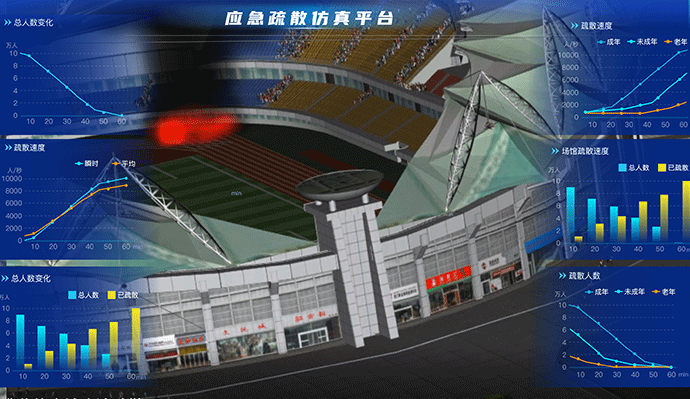 应急疏散仿真平台通过设定突发事故,并结合数字预案、案例、模拟数据等,通过模型进行事故模拟分析,通过记录回放、专家评定等进行演练总结和评估。